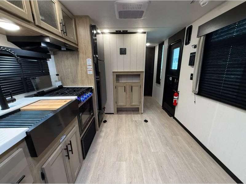 Sleeps 6 Slides 1 Length 34 ft 2 in Ext Width 8 ft Ext Height 10 ft 8 in Int Height 0 ft Hitch Weight 1244 lbs GVWR 9995 lbs Dry Weight 7355 lbs Cargo Capacity 2640 lbs Fresh Water Capacity 52 gals Grey Water Capacity 38 gals Black Water Capacity 38 gals Furnace BTU 20000 btu Available Beds RV King Refrigerator Type 12V Cooktop Burners 3 Number of Awnings 1 Garage Size 11 ft Water Heater Type Tankless AC BTU 15000 btu Awning Info 15' Full Length Power w/LED Light Strip Axle Count 2 Shower Type Standard Solar Wattage 200 watts Similar Floorplans