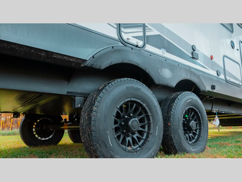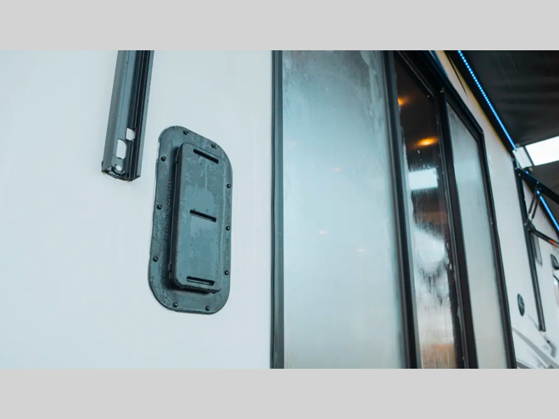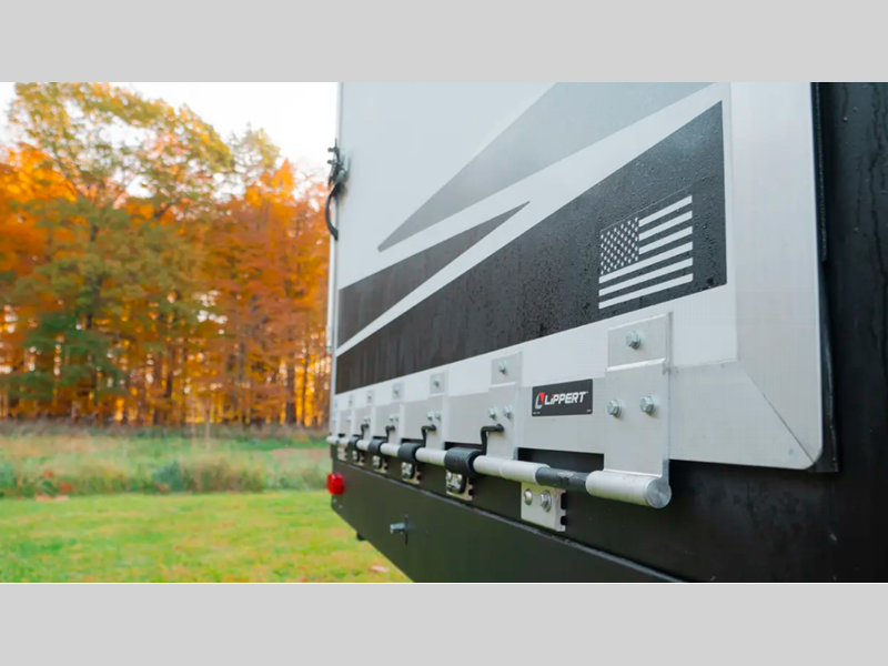 You will love the real wood cabinet doors and drawers inside, along with LED lights and a black stainless steel farm sink that will have you feeling more at home. There are power stabilizer jacks to make your RV more secure, and the power awning with LED accent lighting will create an outdoor space campground neighbors will want to check out.
