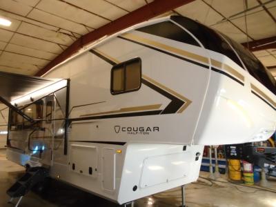 The Keystone Cougar Half-Ton fifth wheel and travel trailers are known as one of America's favorites for a reason! Some of those reasons are the exclusive features that come from Keystone, like the Winegard Air 360+ omni-directional rooftop antenna, the in-floor heating ducts, and the HyperCore composite wall construction with Vixen Fibrogloss high-gloss finish. The Cougar Half-Ton has a Climate Guard protection package with heat-deflecting white sidewalls, two roof attic vents, PEX plumbing and more to enjoy four season camping. Inside, you'll love the dimmable lighting, night roller shades throughout, shower skylight, and bedside USB outlets to keep your electronics charged.