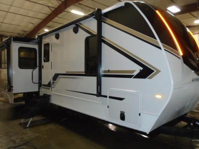 Sleeps 4 Slides 2 Length 33 ft 7 in Ext Height 11 ft 5 in Interior Color Driftwood Hitch Weight 990 lbs Dry Weight 7875 lbs Cargo Capacity 1915 lbs Fresh Water Capacity 54 gals Grey Water Capacity 76 gals Black Water Capacity 38 gals Tire Size ST225/75R15E Furnace BTU 30000 btu Available Beds King Refrigerator Type 12V Refrigerator Size 10.4 cu ft Cooktop Burners 3 Shower Size 36" x 30" Number of Awnings 2 LP Tank Capacity 20 lbs Water Heater Type Girard Tankless On Demand AC BTU 15000 btu TV Info LR LED HDTV Awning Info 10' Electric with Gas Strut Arm Axle Count 2 Number of LP Tanks 2 Shower Type Standard Electrical Service 50 amp Similar Travel Trailer Floorplans