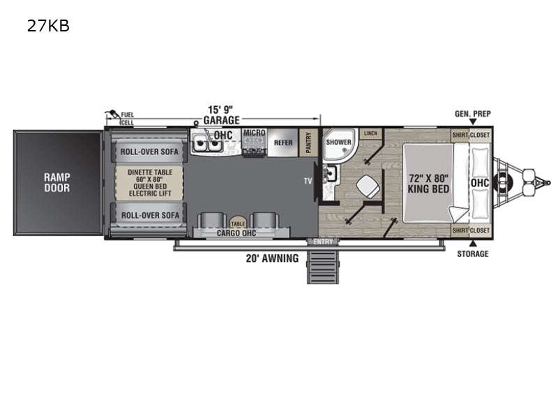 | Garage Size | 15 ft 9 in | LP Tank Capacity | 30 lbs |
